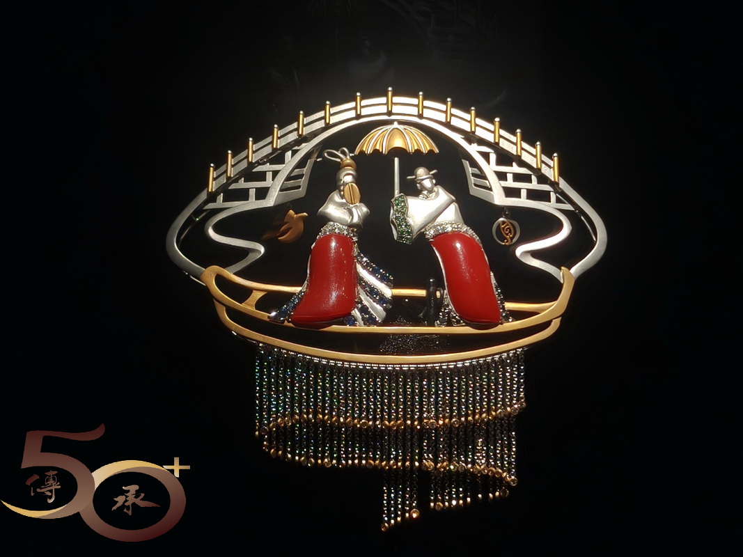 藉此機會,或許介紹一下「金銀珠寶」的工藝,其中花絲工藝就是一種融合「花絲」與「鑲嵌」兩大技法的中國傳統宮廷手工藝製作技藝,先將金、銀等金屬材料抽拉成細絲,再運用掐、填、攢、焊、編、織、堆、壘等精巧手法,將細絲彎折編織成各種精美圖案,最後鑲嵌上寶石、珍珠等珍貴飾物,現已被列入國家級非物質文化遺產名錄。