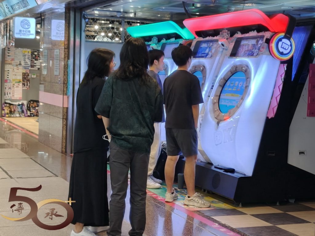 或許是工作日,下班時間未至,地下街遊人不多,顯得有點冷清。雖然沒有圍觀者,自彈自唱的演唱歌手也自得其樂,融入在「自然」的環境中。或許,整條地下街最為熱鬧的地方,莫過於「遊戲機」前的玩家,澎拜的音樂下,雙手轉過不停,發揮着「年青」的氣息。