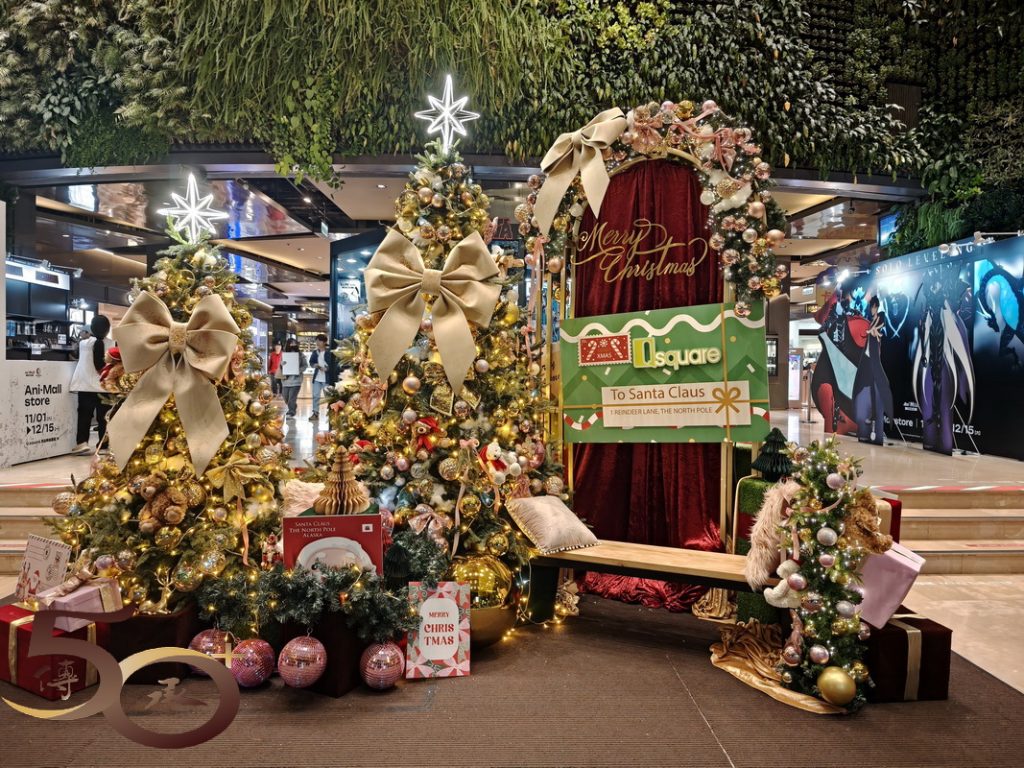 聖誕佳節還有一個多月,惟廣場進門處已有聖誕樹和各款裝飾,洋溢着佳節將臨的歡樂。