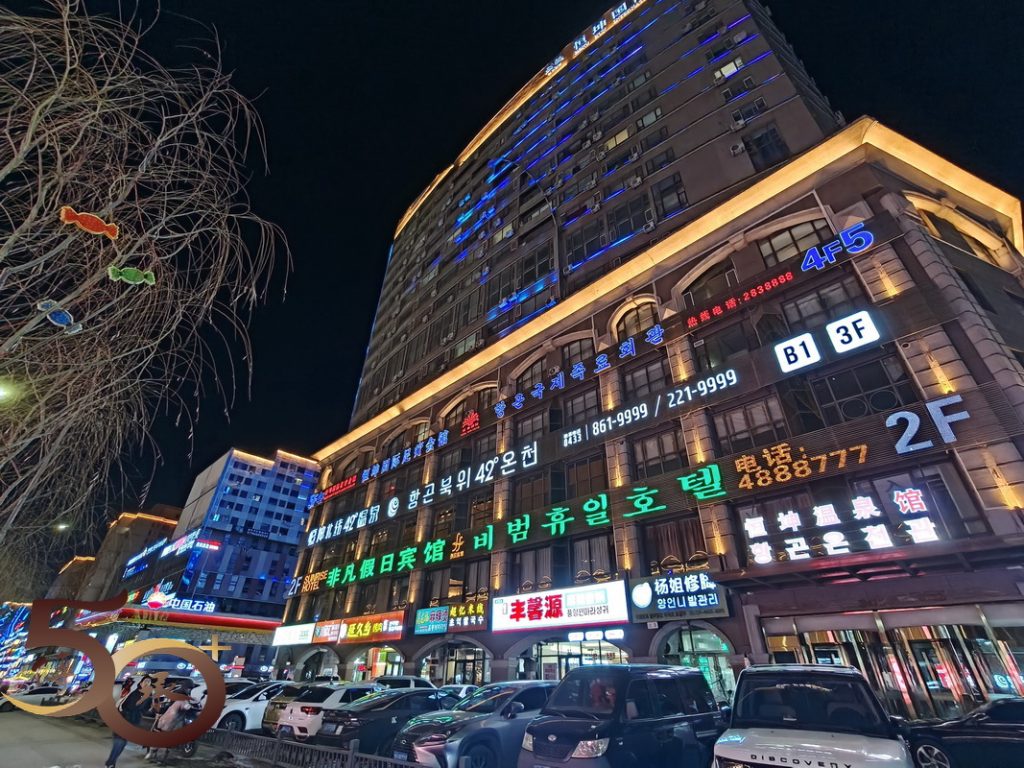 雖說延吉是「邊城」,惟駛進市中心後,不單沒有武俠小說中形容的「荒涼」,滿街的霓虹燈光,河畔張燈結彩的大樓,仿如來到深圳街頭,或是杭州西湖湖畔,繁華之景較之長白山白河鎮的「簡樸」,別有一番風情。