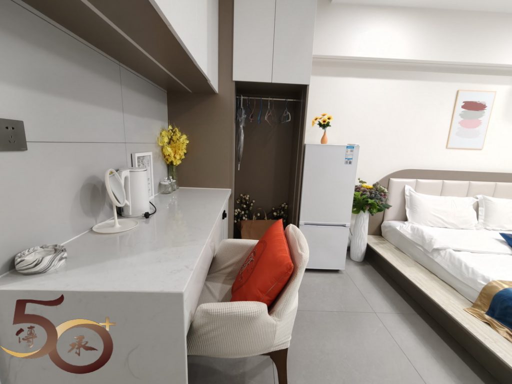 恒坤國際大廈有如「民宿大廈」,在地下電梯大堂的牆壁上,前前後後有逾百個存放「電梯感應匙」的密碼盒,以便入住旅客自取電梯匙,再前往預定的房間入住。按「指示」取得電梯匙後乘電梯到15樓,雖然原定的1503號棲心舍改為1510室,惟設施相若,只是走廊外有雜物亂放,甚至有一個大型儲物櫃。