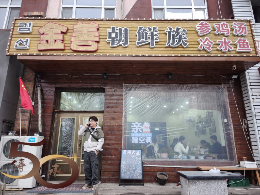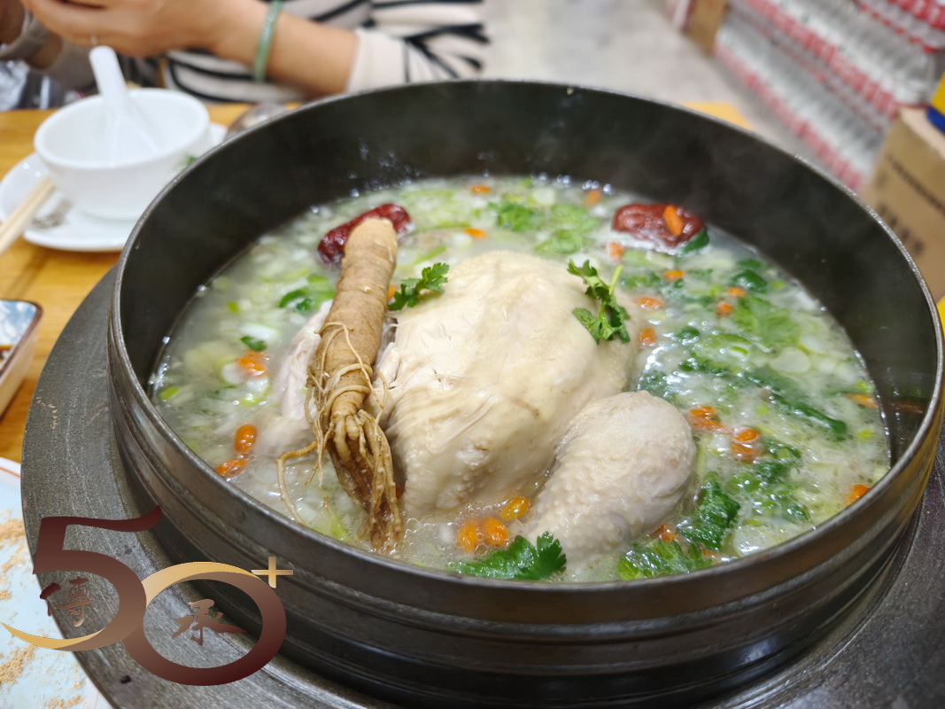 午飯時間已過,鋪滿白雪的街道,兩旁店鋪不少已關門休息。幸而金善朝鮮族蔘雞湯仍在營業,進店透過點評叫了一客滋補蔘雞湯2人餐(118元)。