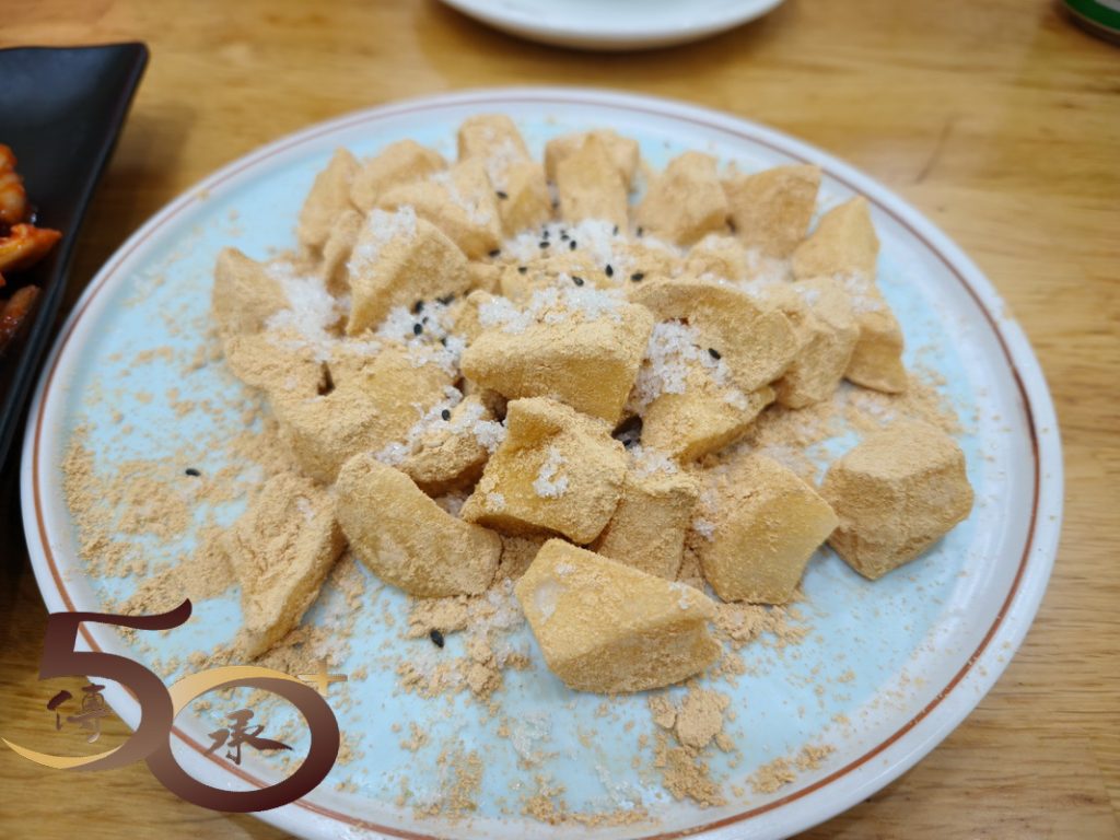 除正宗朝鮮風味,雞味濃郁的蔘雞湯外,還有地道小吃朝鮮族手工打糕,十分軟糯但味道較淡,口感上還是對粵港的出品較為喜歡。至於配菜辣白菜則十分可口,辣度適宜。整個套餐在長白山的零度天氣下十分暖胃,價錢便宜,在性價比上,香港實在難以匹敵。
