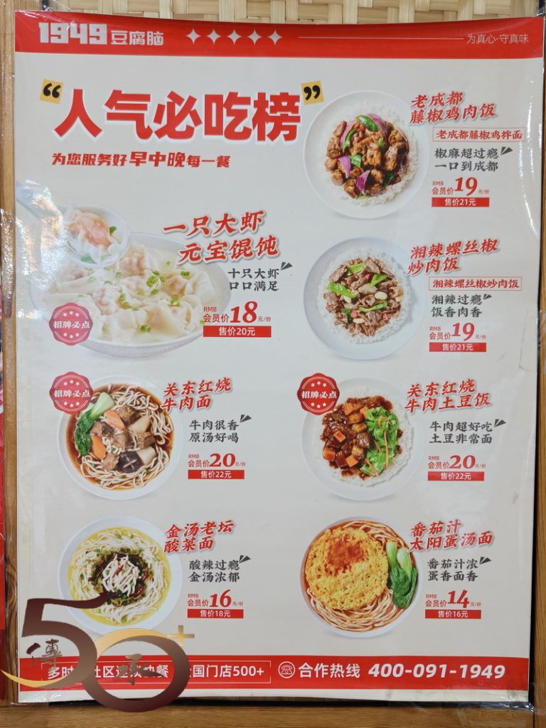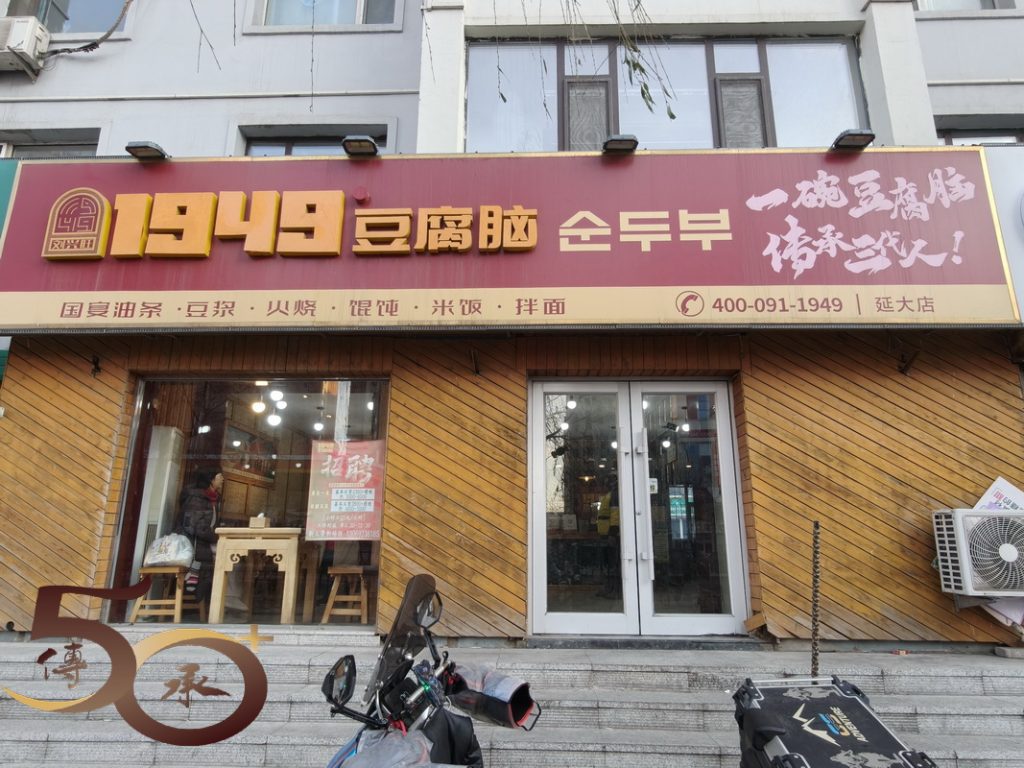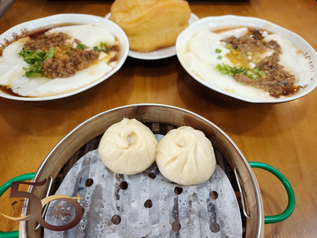 上午0730時來到民宿對面的「1949豆腐腦」進食早餐,分別點了兩個經典肉臊豆腐腦。有別於粵式的加糖甜食,北方菜特色的豆腐腦鋪上了肉碎,淋上了肉汁的鹹食,味道似肉臊粥卻帶有少少甜味,口感十分特別。