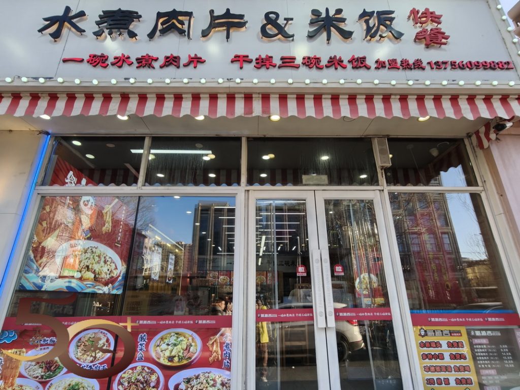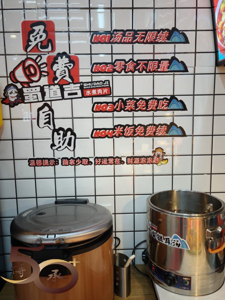 雖然入住的長春會展中心大飯店自助早餐十分豐盛,自己也吃得不少,惟午餐時間已過,正好吃一個下午茶,遂在長影製片廠旁的蜀尚煌水煮肉片進食「午餐」。有別於香港的快餐連鎖店,「蜀尚」是先以自助方式取如蔬菜菇類等配菜(每斤16.8元),然後再點餐。