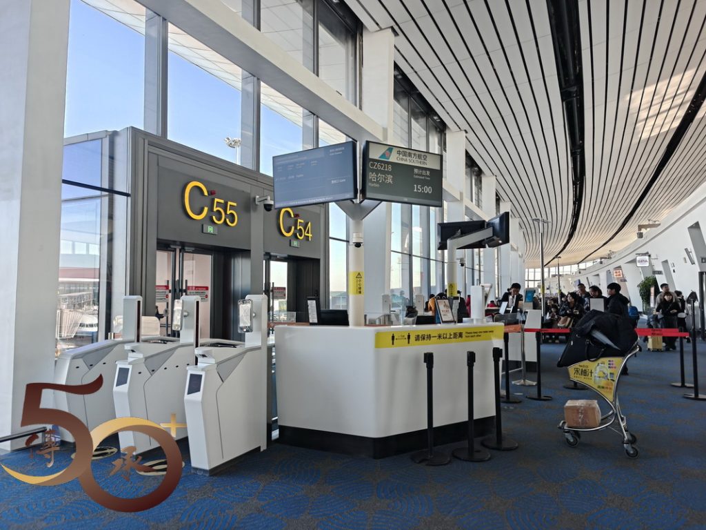 轉、轉、轉,北京大興機場空間諾大,轉了兩圈,腿子也有點酸軟了。幸而及至下午1400時來到C55號閘口,轉乘前往哈爾濱的南航航班CZ6218也準備登機了。尤記得今早值機時,南航地勤人員已表明, CZ6218全機滿座,此刻候機的乘客早已擠滿整個大堂。