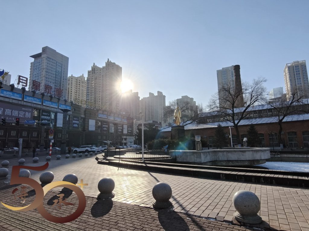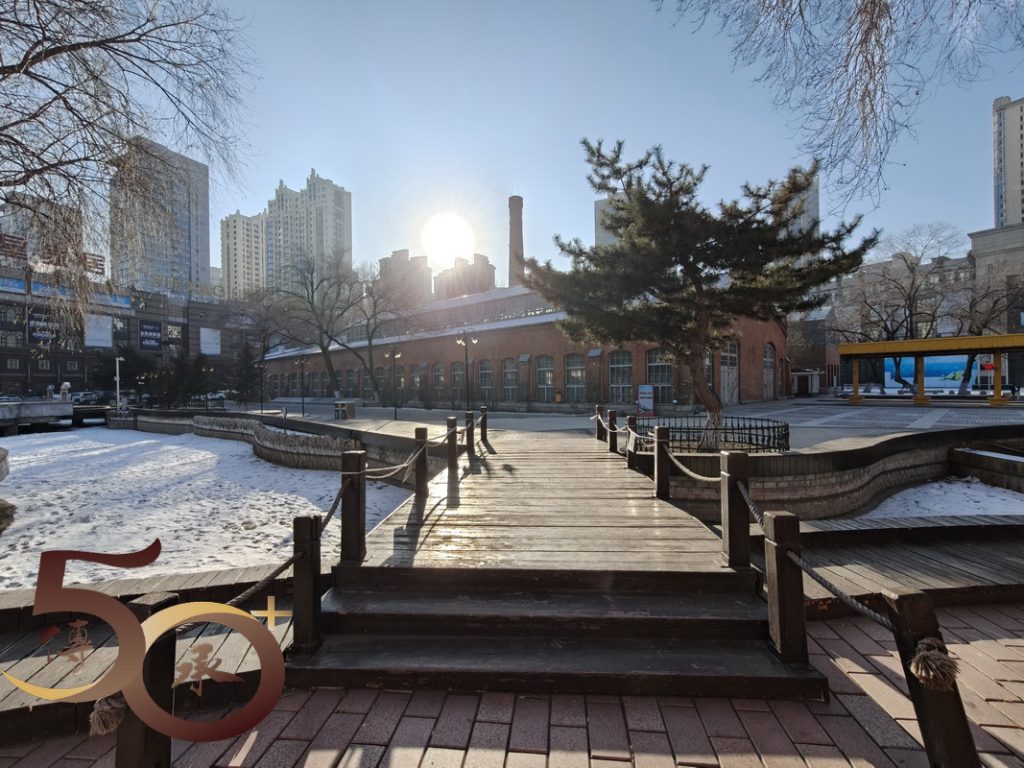 眼前俗稱「三十六棚」的紅磚建築已有百多年歷史,於1898年,沙俄為修築中東鐵路而建的北滿地區最大近代化鐵路工廠。但由於城市發展,工廠於上世紀八十年代開始改建為現代化住宅,至今廣場仍保留0658號蒸汽機車供展出之用。