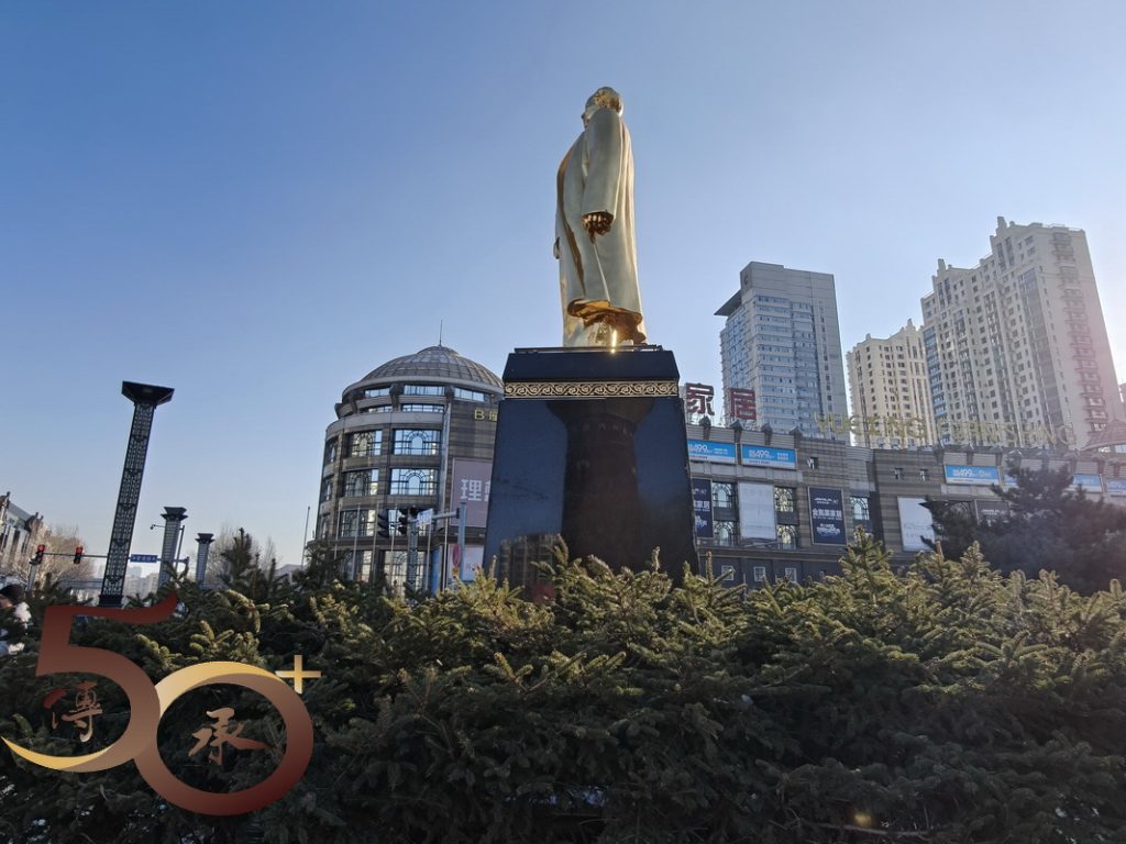 午後的廣場遊人不多,只有三數居民正在「抽陀螺」。對於這種盛行於上世紀四十年代的中國傳統體育遊戲,自己雖不懂得「玩」,但其背後「打敗日本、打漢奸」的含意,卻深表認同。此外,廣場內亦有一尊立於1968年的毛主席寶像,後於2003年重塑金身並豐碑永存。